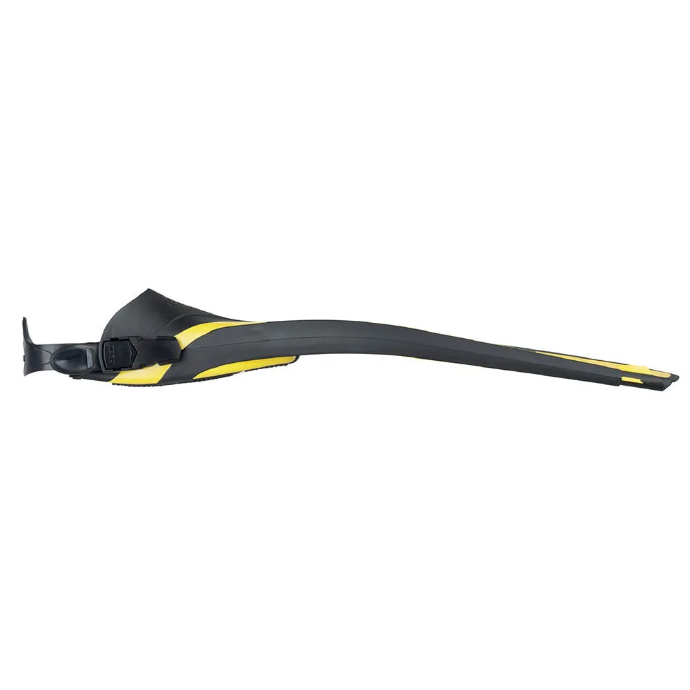 Om hoge prestaties te garanderen en kracht te behouden bij elke druk, heeft de fabrikant aerodynamische kanalen ingebouwd om het water gelijkmatig te verdelen, zonder de bewegingen van de atleet te hinderen. Het heeft een zeer comfortabele en comfortabele schoen gemaakt van speciaal thermoplastisch rubber. Het heeft een riem die zich perfect aanpast aan uw voet en deze op zijn plaats houdt.